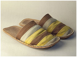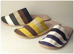 slippers PRICE : 3,500 + 350 (tax) = 3,850 円 SIZE : S , M , L 帆布帯六本を組み合わせた室内履きのスリッパです。 アッパーの裏張にはフェルトを使用しております。ソールはスプリットレザーです。 S:23 〜 24 cm 相当 M:25 〜 26 cm 相当 L:27 〜 28 cm 相当 にて製作致します。 色の組み合わせについて。 slipper/スリッパ のご注文。 お支払い、送料、について。 |